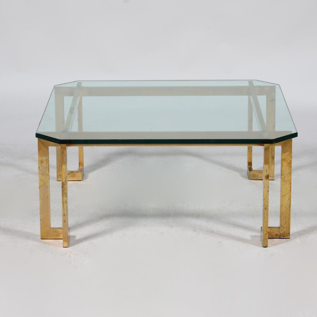 QUALITY NICKELED BRASS COFFEE TABLE BASE WITH THICK GLASS TOP C 1965. TOP APPEARS TO HAVE AKamelot Auctions4.4(346)$4003 days Left