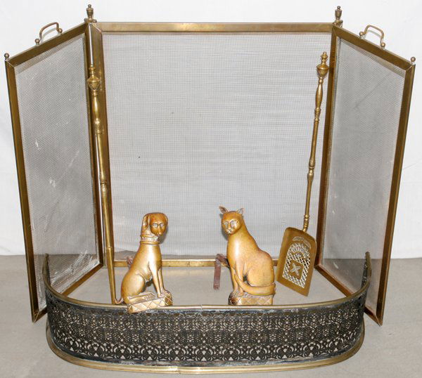 BRASS ANDIRONS FENDER, SCREEN & FIRE TOOLS