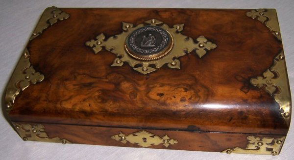 Brass bound burl walnut fitted game box