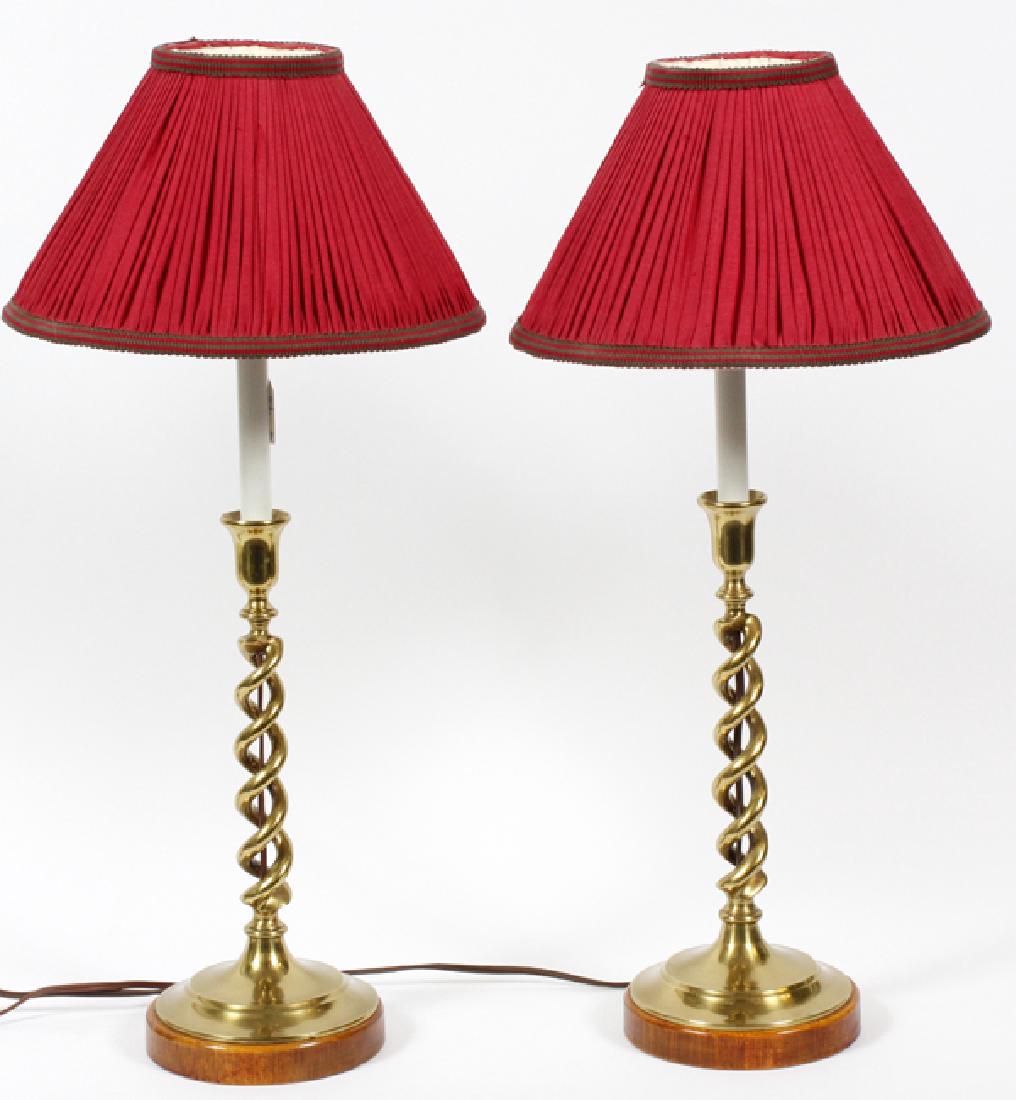 BRASS CANDLESTICKS CONVERTED TO LAMPS PAIR
