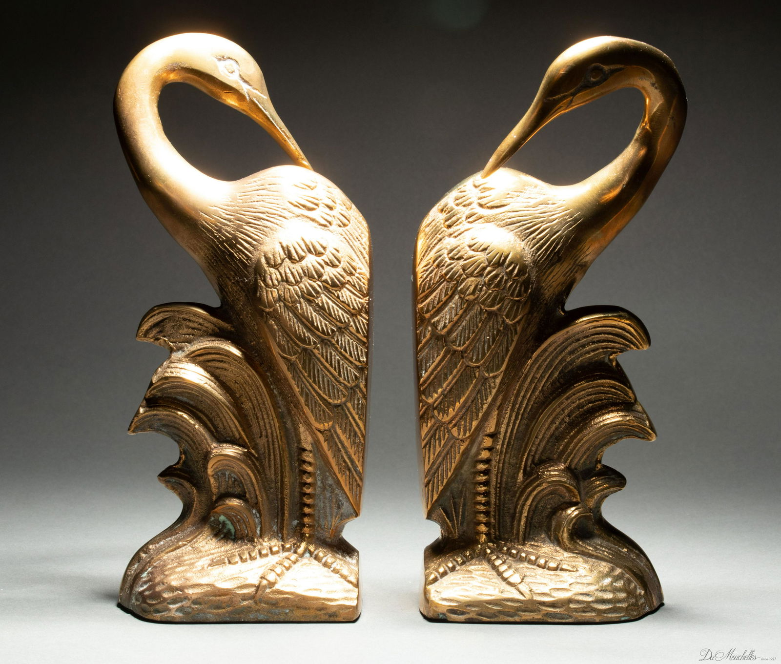 BRASS CLAD BOOKENDS, PAIR H 8" CRANES