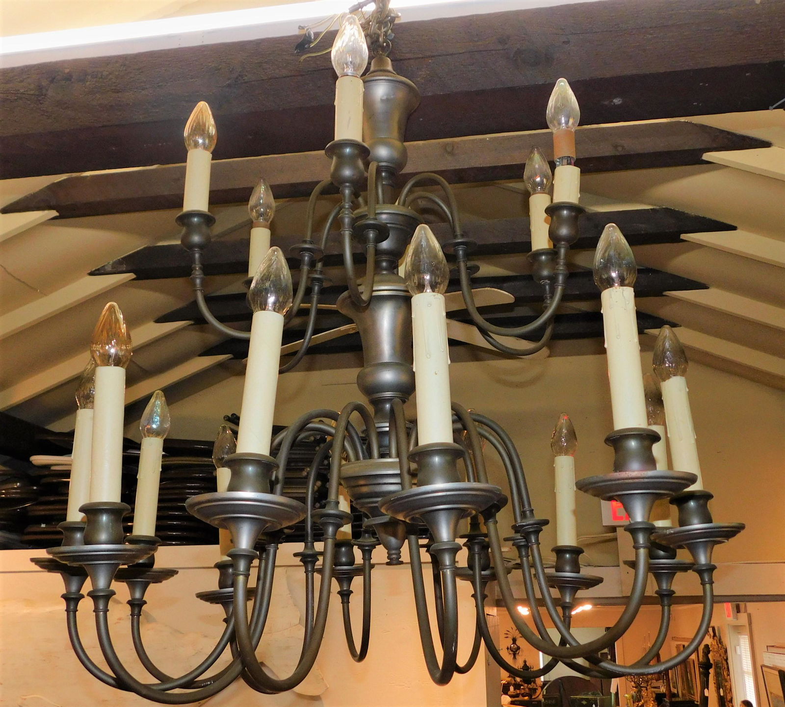BRASS COLONIAL 18 ARM CHANDELIER