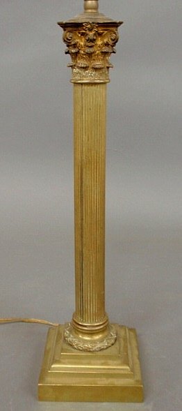 Brass column form lamp base, 19th c., converted t