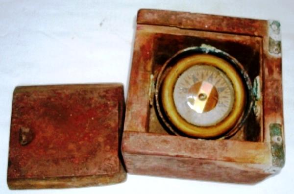 BRASS COMPASS IN WOODEN BOX