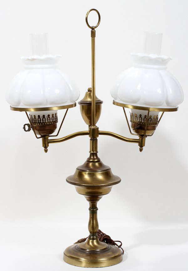 Vintage Antique Double Brass Hurricane Student Lamp with White Glass ShadesLodestar Auctions4.7(444)$25