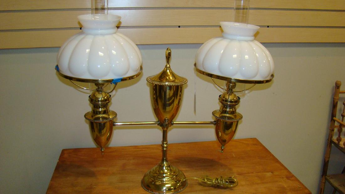 Vintage Antique Double Brass Hurricane Student Lamp with White Glass ShadesLodestar Auctions4.7(444)$25