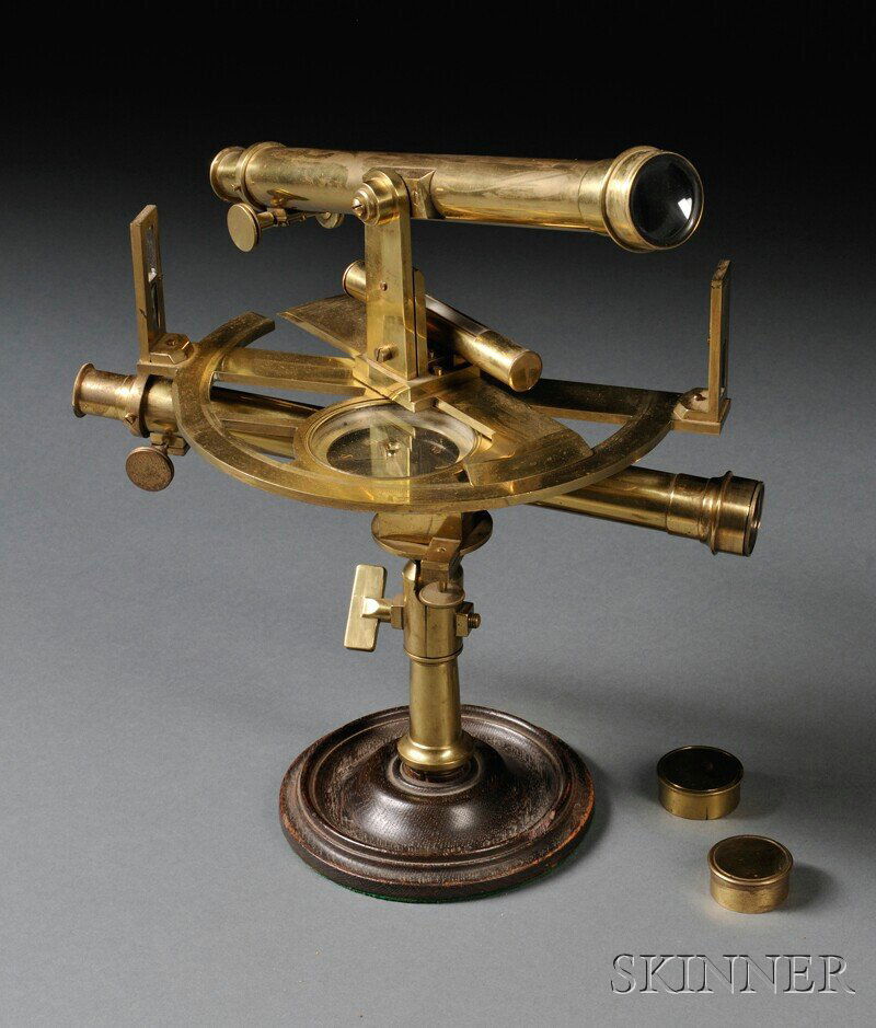 Turned Mahagony Wood and Silver Plated Bronze Sundial Compass22 hrs LeftAntique W. & L. E. Gurley Brass Surveyor's Transit c189010 hrs LeftBaroness Jeanne-Marie Vintage Brass Telescope6 days LeftGOLD FOIL ELECTROSCOPE Late 19th/Early 20th Century Max height approx. 12". Base diameter 4".Mar 12, 2026BRASS READING TELESCOPE WITH TRIPOD BASE America, Late 19th Century Height 11.5". Tripod baseMar 12, 2026Floor Standing Brass Theodolite 62"3 days LeftGregory-Style Reflecting Telescope, c. 1780Mar 14, 2026CASED JOHN BROWNING BRASS SPECTROSCOPE London, Mid- to Late 19th Century Scope height 12.5". CaseMar 12, 2026French Graphometer by Lasnier, c. 1740Mar 14, 2026LEATHER-WRAPPED REFLECTING TELESCOPE ON A FOLDING BRASS TRIPOD Early 19th Century Collapsed heightMar 12, 2026CASED W. & L.E. GURLEY BRASS SURVEYOR'S LEVEL Troy, New York, 19th Century Barrel length 15.25".Mar 12, 2026Chrome Alidade 14" CompassMar 12, 2026ASTATIC MIRROR GALVANOMETER Late 19th Century Height 12.5". Base 5" x 5".Mar 12, 2026Large German Theodolite by Tesdorpf, c. 1895Mar 14, 2026LACQUERED AND PAINTED BRASS SPECTROSCOPE Germany, Late 19th Century Height approx 18". Width approx.Mar 12, 2026CASED BRASS ROSS-TYPE STEREOSCOPIC BINOCULAR MICROSCOPE England, Late 19th Century Microscope heightMar 12, 2026
