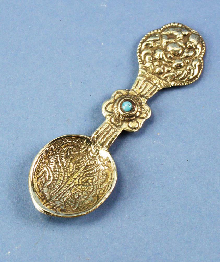 Brass Engraved Spoon with Turquoise Stone