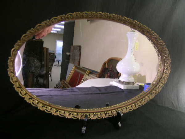 BRASS GALLERY FRAME OVAL VANITY MIRROR
