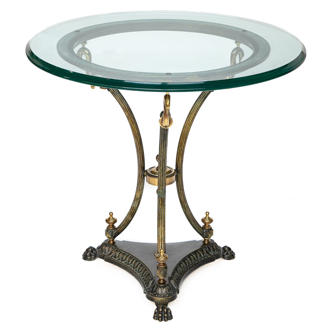 Brass, Glass and Metal Circular Side Table
