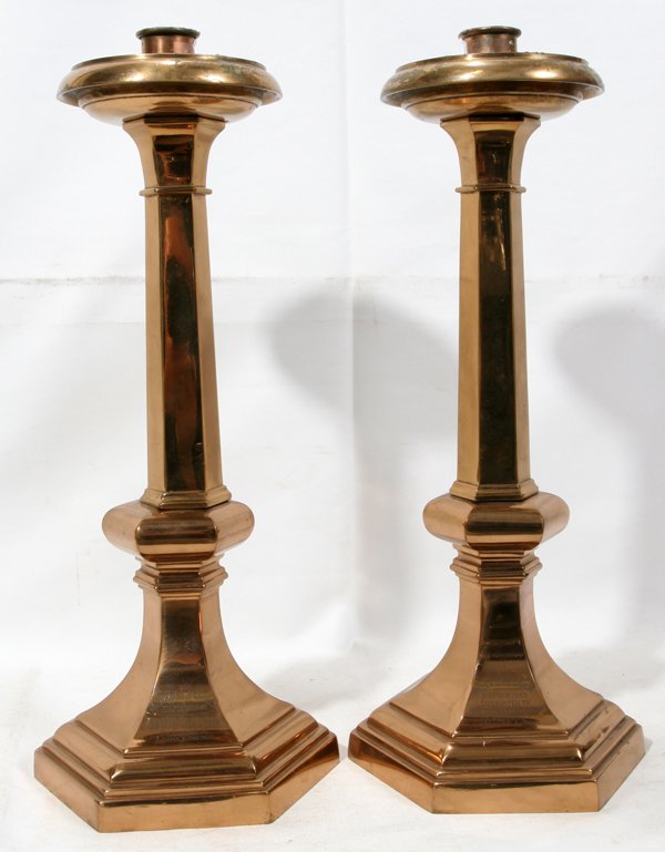BRASS HEXAGONAL CANDLESTICKS, PAIR, H 18",