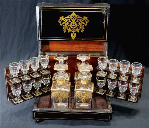 Brass Inlay Ebonized Box Tantalus Set