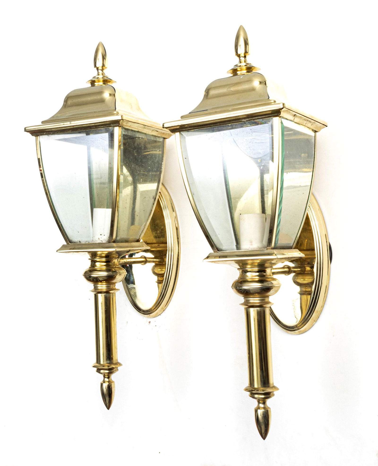 BRASS LANTERN SCONCES, PAIR, H 26", W 7.5"