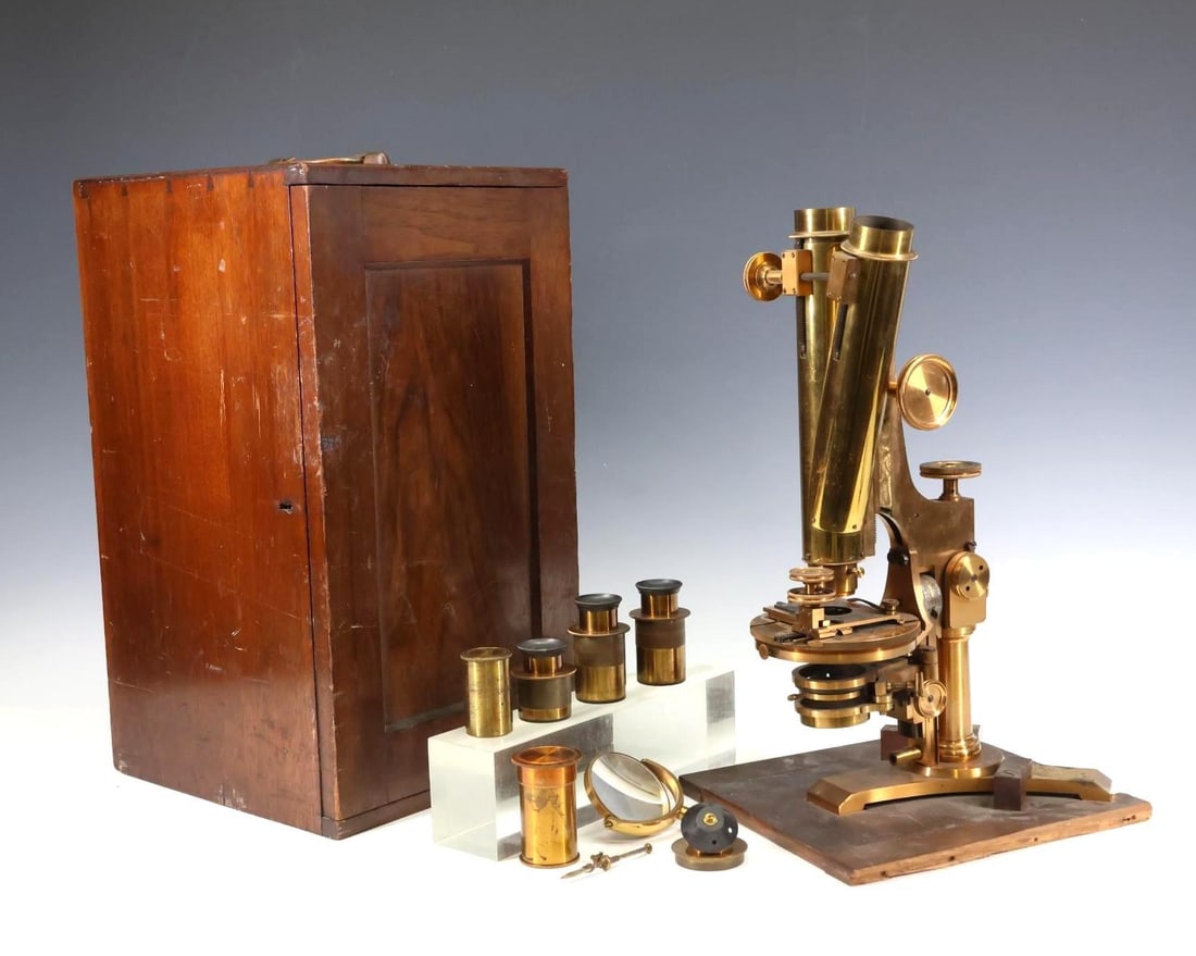 Scientific Lot. Bausch and Lomb Optical Microscopes. Wetzler Microscope, Custom box.3 days LeftVtg Brass Sextant Navigational Instrument W Wd Box2 days LeftANTIQUE OPHTHALMICS, TRIAL LENS, TABLE, 300 LENS, MOREFeb 21, 2026A Charles Baker compound binocular microscope, English, late 19th century,H Crouch Binocular Microscope w Petrographic PrismsFeb 25, 2026A VINTAGE CLOCK together with a microscope. (2)1 day LeftVintage Spencer Buffalo, USA Microscope in Original Wood CaseFeb 16, 2026Gould-Type Simple Microscope, Unsigned, C. 1840Feb 25, 2026Ross London Eclipse 6284 Brass Microscope, C.1890, 11 3/4"h.2 days LeftNikon Epoi Microscope W Case, Lenses & More Japan2 days LeftA lacquered brass three-inch six-draw portable astronomical telescope, mid-19th century, French,Feb 24, 2026MAGIC LANTERN IN ORIGINAL DISPLAY BOXFeb 19, 2026Von Nardroff Color ApparatusFeb 25, 2026Vintage Microscope Kit in Leather Case5 days LeftAn unusual compound monocular microscope, English, early 18th century,Pair of card presses and a bezique set. 19th century. Inclu...Feb 19, 2026