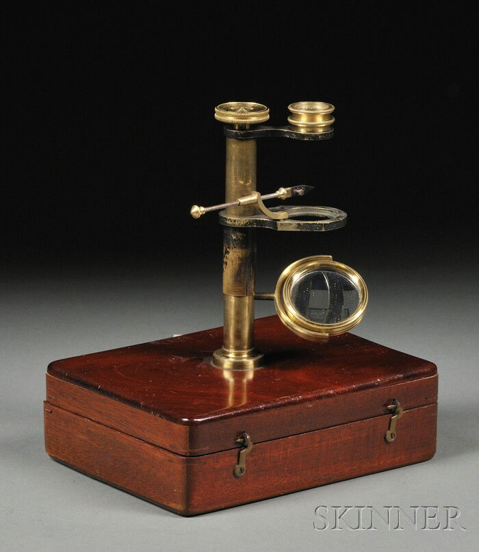 CASED BRASS ROSS-TYPE STEREOSCOPIC BINOCULAR MICROSCOPE England, Late 19th Century Microscope heightMar 12, 2026CASED BAUSCH & LOMB BRASS MICROSCOPE New York, Late 19th Century Cased height 14". Width 8.5". DepthMar 12, 2026CASED BRASS MONOCULAR MICROSCOPE Mid-19th Century Case height 4.5". Width 11". Depth 5.5".Mar 12, 2026CASED M. PILLISCHER BRASS MONOCULAR MICROSCOPE London, Mid-19th Century Microscope height approx.Mar 12, 2026CASED J. ZENTMAYER BRASS MONOCULAR MICROSCOPE Philadelphia, Late 19th Century Case height 11.5".Mar 12, 2026BRASS READING TELESCOPE WITH TRIPOD BASE America, Late 19th Century Height 11.5". Tripod baseMar 12, 2026Culpeper-Type Compound Microscope, c. 1800–20Mar 14, 2026Case-Mounted French Microscope, c. 1844Mar 14, 2026Early Simple Microscope by Carl Zeiss, Jena, 1866Mar 14, 2026CASED SMITH & BECK MICROSCOPE London, Mid-19th Century Case height 6.25". Width 17". Depth 9".Mar 12, 2026CASED BAUSCH & LOMB PHYSICIAN'S MODEL MICROSCOPE New York, Late 19th Century Microscope height 12".Mar 12, 2026Gould-Type Simple Microscope, Unsigned, C. 18401 day LeftBrass Microscope by Seibert, c. 1880Mar 14, 2026GOLD FOIL ELECTROSCOPE Late 19th/Early 20th Century Max height approx. 12". Base diameter 4".Mar 12, 2026Very Early Compound Microscope by Carl Zeiss in Jena, 1864Mar 14, 2026French Compound Brass Microscope by Nachet, c. 1875Mar 14, 2026