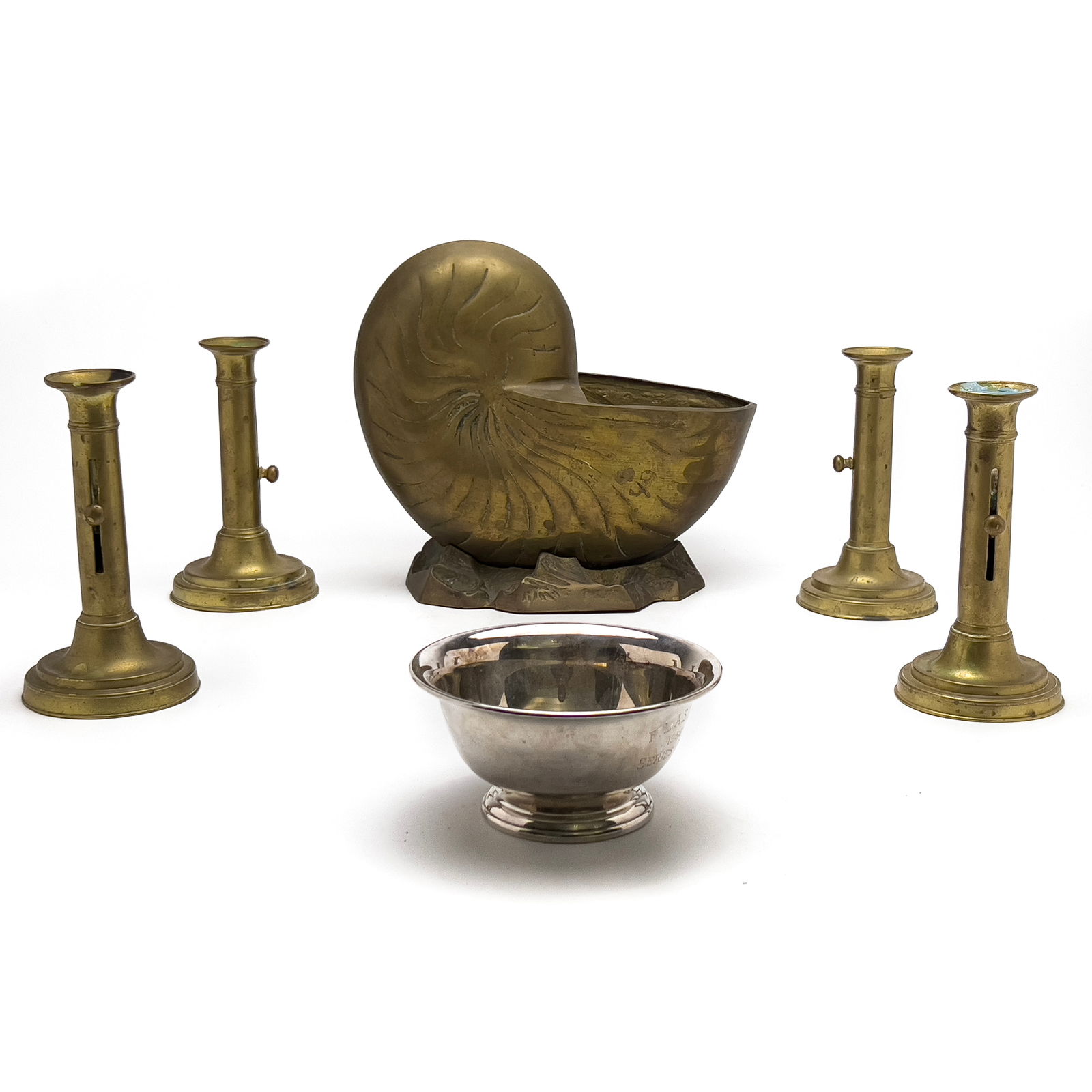 Brass Nautilus and Push Up Candlestick Group