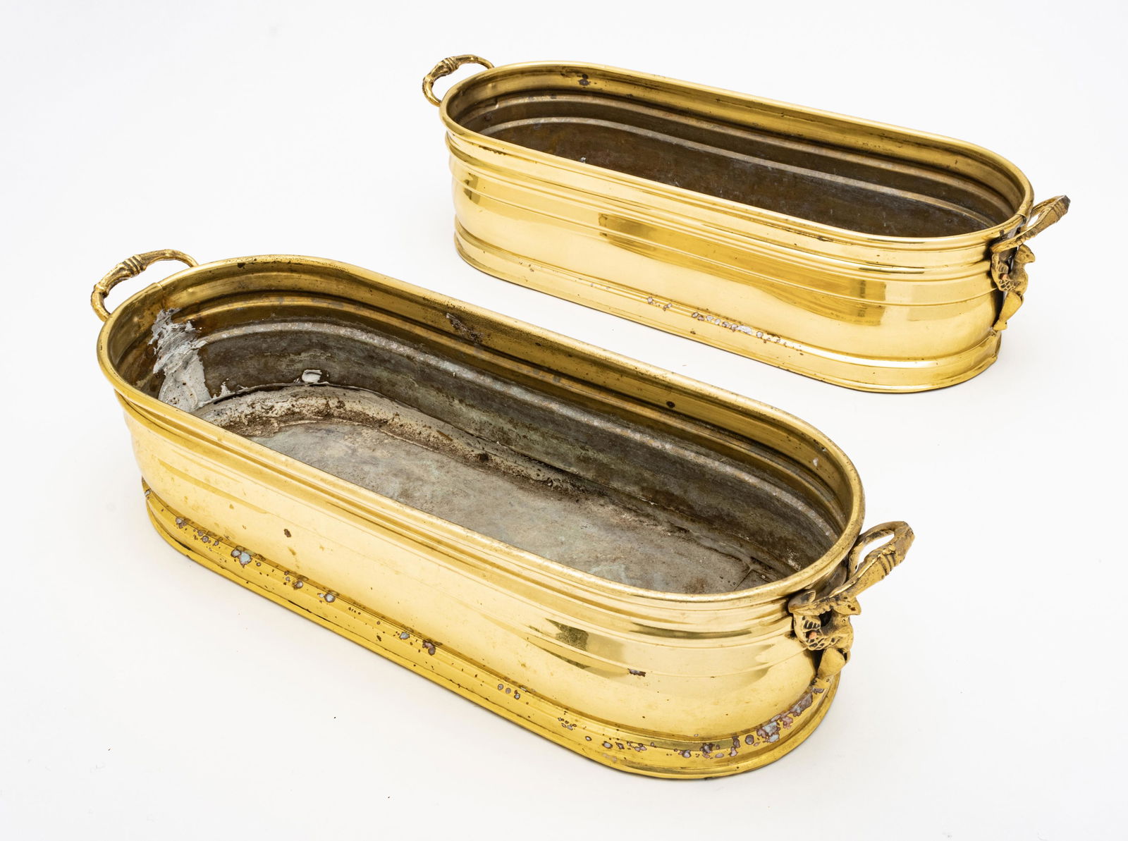 BRASS PLANTERS, PAIR, H 20", W 7"