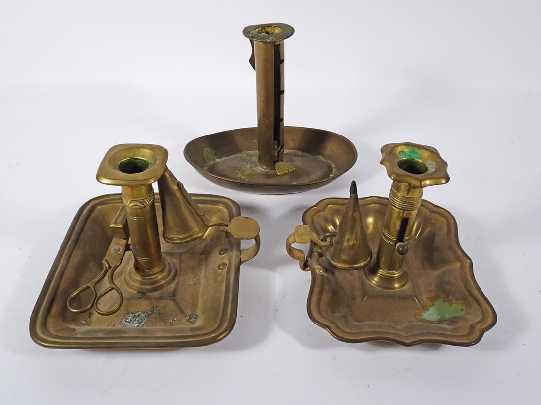 Brass Push-Up Chamber Candlesticks Grouping