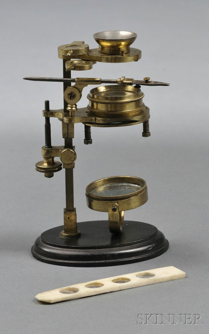 BRASS READING TELESCOPE WITH TRIPOD BASE America, Late 19th Century Height 11.5". Tripod baseMar 12, 2026CASED M. PILLISCHER BRASS MONOCULAR MICROSCOPE London, Mid-19th Century Microscope height approx.Mar 12, 2026GOLD FOIL ELECTROSCOPE Late 19th/Early 20th Century Max height approx. 12". Base diameter 4".Mar 12, 2026CASED BRASS ROSS-TYPE STEREOSCOPIC BINOCULAR MICROSCOPE England, Late 19th Century Microscope heightMar 12, 2026Culpeper-Type Compound Microscope, c. 1800–20Mar 14, 2026CLOCK MOVEMENT REPAIR STAND AND A WATCH HOLDER Late 19th CenturyMar 12, 2026Floor Standing Brass Theodolite 62"3 days LeftLACQUERED AND PAINTED BRASS SPECTROSCOPE Germany, Late 19th Century Height approx 18". Width approx.Mar 12, 2026A vintage nautical polished cast brass maritime theodolite3 hrs LeftCASED BAUSCH & LOMB BRASS MICROSCOPE New York, Late 19th Century Cased height 14". Width 8.5". DepthMar 12, 2026CASED JOHN BROWNING BRASS SPECTROSCOPE London, Mid- to Late 19th Century Scope height 12.5". CaseMar 12, 2026Large German Theodolite by Tesdorpf, c. 1895Mar 14, 2026Early 20th C. Serreed Brass & Wood Table LampMar 07, 2026Brass Scientific Instrument PartsMar 18, 2026Antique Aronsberg & Co. English Brass TelescopeMar 11, 2026Antique W. & L. E. Gurley Brass Surveyor's Transit c18908 hrs Left