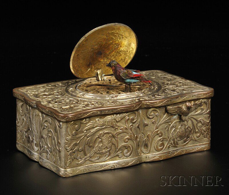 A TURQUOISE INLAID BRONZE AND SILVER 'FISH' TINDER POUCH, CHUCKMUCK, 19TH CENTURYMar 11, 2026A TURQUOISE INLAID GILT COPPER AMULET BOX, KHEDI, 18TH -19TH CENTURYMar 11, 2026A Precious Gilt-Bronze Silver White Jade-Inlaid 'Bird& Flower' BoxMar 06, 2026Continental Silver, Enamel & Jeweled Musical Jewelry BoxMar 14, 2026Han Dynasty Bronze Censer with Gold/Silver/Turquoise Inlay and Standing Bird1 day LeftAntique Small Brass Utility Box w/ Handle – c.19007 days LeftA Brilliant Gilt-Bronze Silver White Jade-Inlaid 'Flower& Figure' BoxMar 06, 2026A Brilliant Gilt-Bronze White Jade-Inlaid 'Figure& Flower' BoxMar 06, 2026A Qing Dynasty copper-gilt inlaid treasure character story beam boxMar 28, 2026A Tang Dynasty silver-gilt inlaid treasure scripture box1 day LeftMiniature Brass Bird Cage Annular Clock, early 20th c., H.- 11 1/4 in., W.- 5 1/4 in., D.- 5 3/4 in.9 hrs LeftA GILT BRONZE ENAMELLED COVERED BOX WITH INLAID GEMSTONES6 days LeftA Gorgeous Gilt-Silver 'Buddha Shakyamuni' Box With A Scroll Of Buddhist SutrasMar 06, 2026A Magnificent Imperial Gilt-Bronze Blueing 'Bat& Scrolling Lotus' Tripod BoxMar 06, 2026A German Gilt-Metal and Enamel Singing Bird Automaton BoxMar 11, 2026Reuge Music No. 198 Ash Singing Bird Box6 days Left