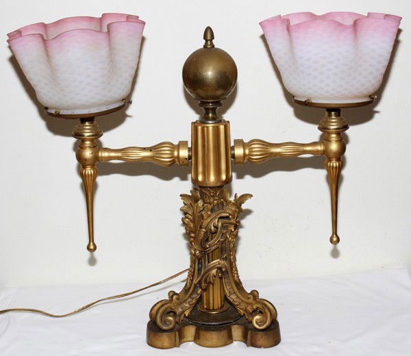 A decorated art nouveau bronze table lamp with five light spots and glass capsOstantix Auctions4.4(13)€1604 days Left