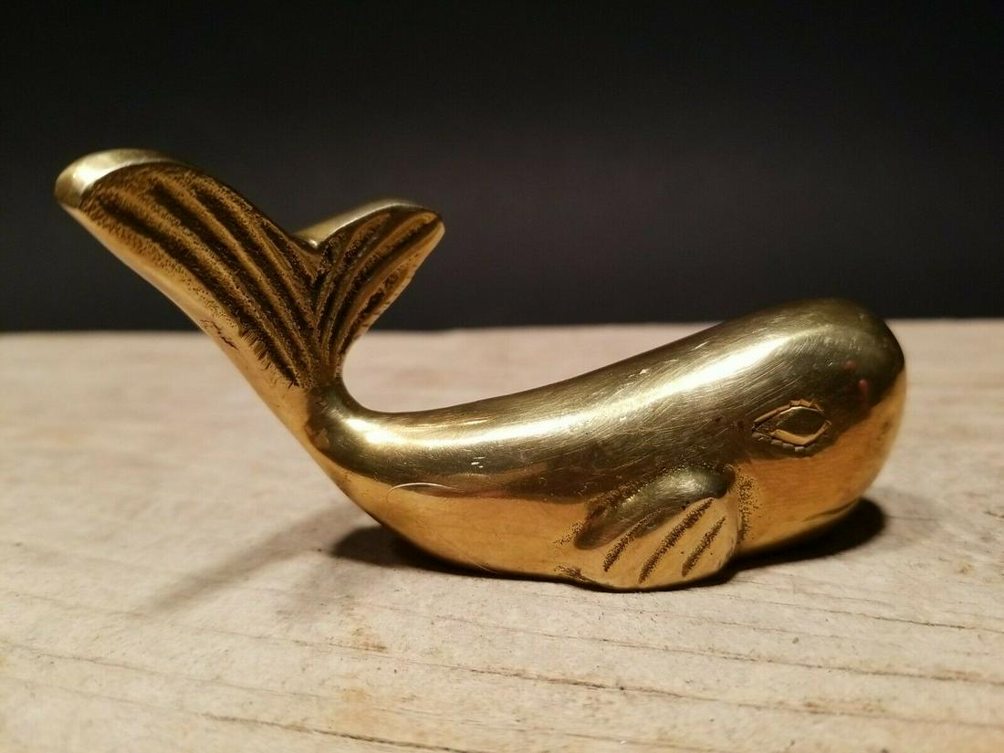 Brass Whale Paperweight Desk Statue