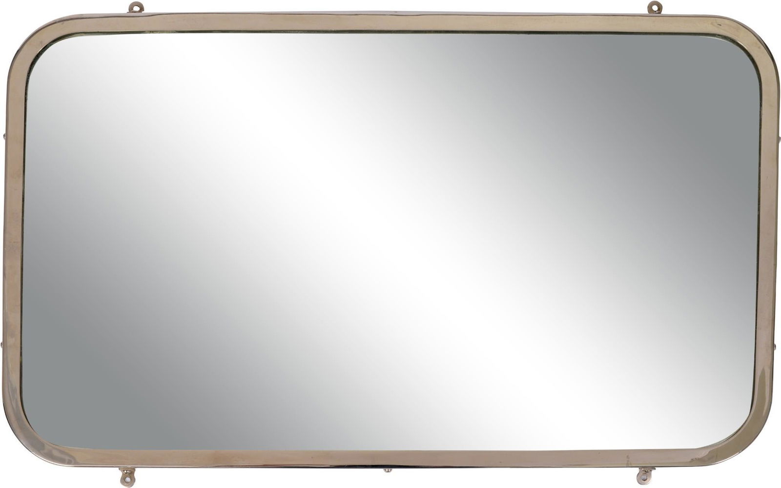 SoldIndustrial MCM Rectangular MirrorRectangular MCM industrial mirror with rounded/ curved corners. Can be hung vertical or horizontal, galvanized back. Measures 18 1/2" by 13". As found estate condition . Please use photos as part of tSee Sold Price