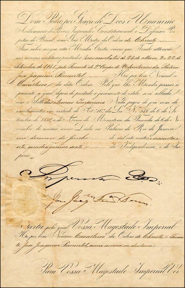 Brazil's Pedro II Document Signed UACC PADA