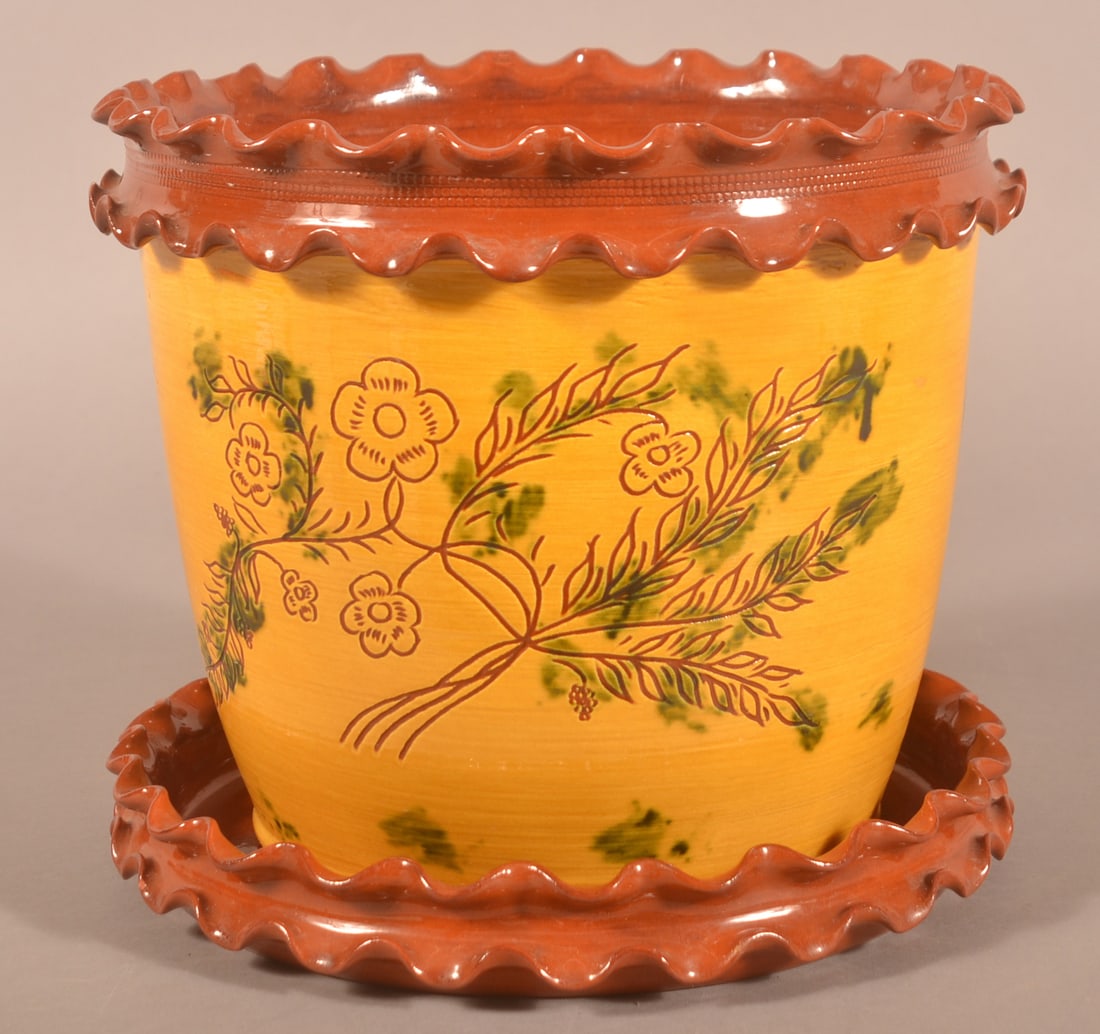 Breininger Pottery 1988 Sgraffito Redware Planter.