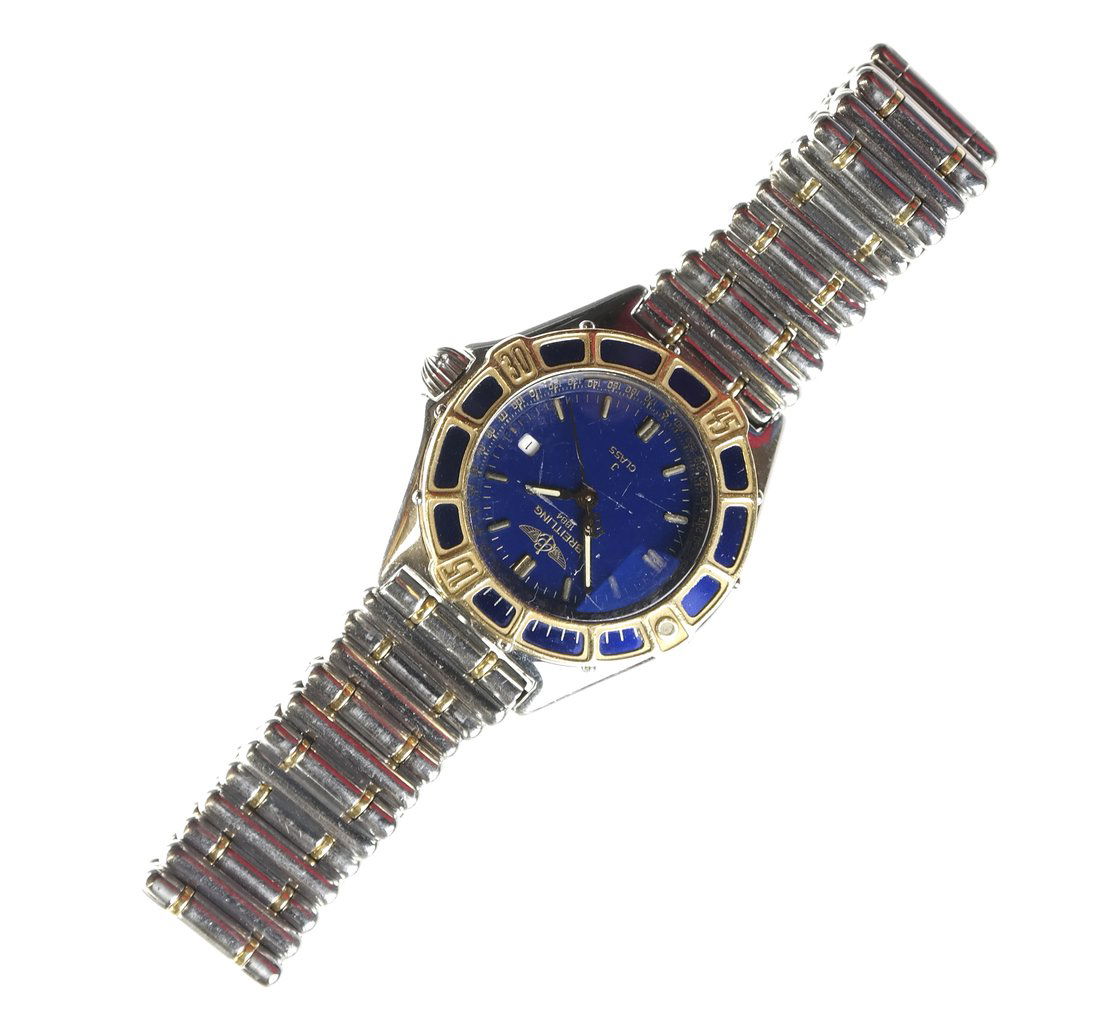 Sold18K Gold & Stainless Steel Breitling Estate WatchArtist/Designer; Manufacturer: Breitling (Switzerland) Marking(s); notes: Breitling imprints, B 13050, 115622, marking(s) Materials: 18K gold, stainless steel, metal Dimensions (H, W, D): 8"l, 1.64"wSee Sold Price