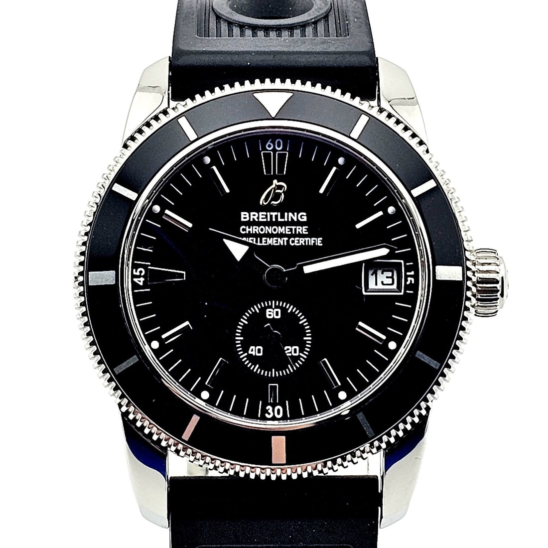 SoldThis is a men's stainless steel Breitling SuperOceanThis is a men's stainless steel Breitling SuperOcean Automatic Ref A17040. The watch features a massive circular steel case with a screw down waterproof back. It measures 45.25mm including the croSee Sold Price