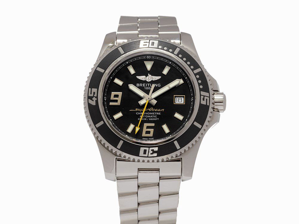 A RARE BREITLING, REF. K44355 18K YELLOW GOLD AND DIAMOND LIMITED EDITION 'CROSS WIND SPECIAL' CHRONA RARE BREITLING, REF. K44355 18K YELLOW GOLD AND DIAMOND LIMITED EDITION 'CROSS WIND SPECIAL' CHRONOGRAPH WRISTWATCH 42.00 mm case diameter, the bezel, lugs and bracelet containing numerous round bri