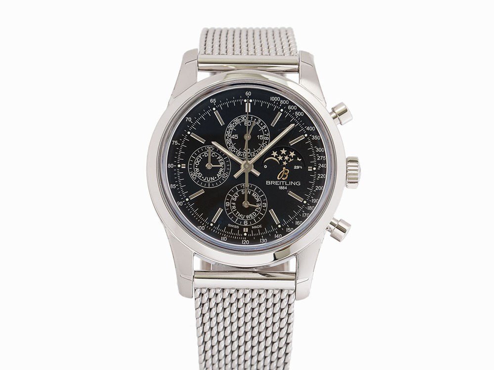 A RARE BREITLING, REF. K44355 18K YELLOW GOLD AND DIAMOND LIMITED EDITION 'CROSS WIND SPECIAL' CHRONA RARE BREITLING, REF. K44355 18K YELLOW GOLD AND DIAMOND LIMITED EDITION 'CROSS WIND SPECIAL' CHRONOGRAPH WRISTWATCH 42.00 mm case diameter, the bezel, lugs and bracelet containing numerous round bri