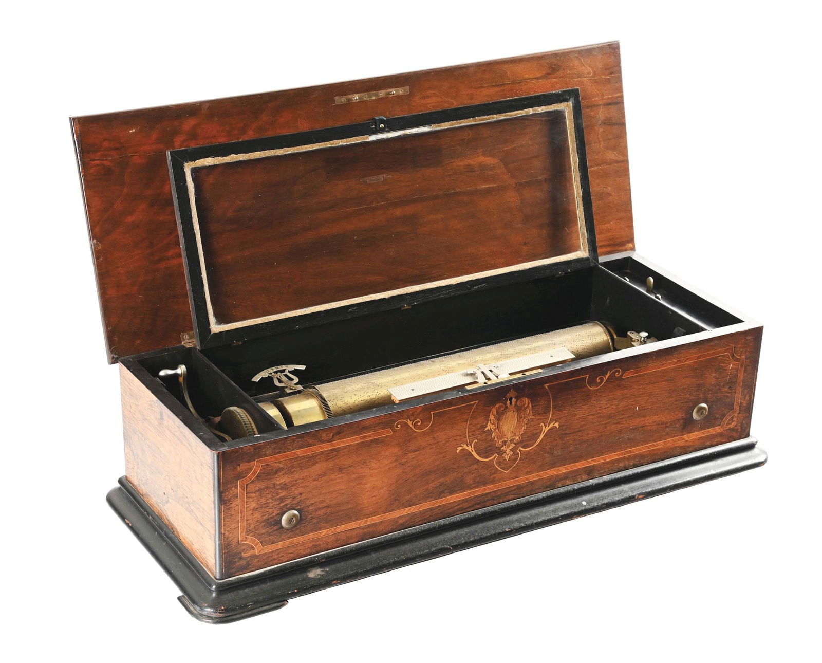 ANTIQUE SWISS CYLINDER MUSIC BOX FABRIQUE DE GENEVEFeb 21, 2026Late 19th Century Regina Mahogany Crank Music Box With DiscsMar 03, 2026Cylinder music box19 hrs LeftAn Interchangeable Cylinder Musical Box, Swiss, circa 1880, 18cm high, 69cm wide, 27cm deepANTIQUE EUROPEAN WOODEN MUSIC BOXFeb 21, 2026Antique Rosewood Mahogany ? Marquetry Swiss Music BoxFeb 26, 2026A Louis Payen Arithmometer, French, circa 1900,Benson & Hedges Mahogany Cigar HumidorFeb 21, 2026Mother-of-Pearl Inlaid Rosewood Jewelry Box2 days LeftReuge Marquetry Inlaid Disc Music Box H 8.5" W 12.5" Depth 8.75"Feb 19, 2026Mahogany Tea Caddy by Henkel Harris6 days LeftPennsylvania Blanket Chest, old red paint on poplar, brass fittings, dovetailed, on ChippendaleFeb 24, 2026Swiss Cylinder "6-Airs" Marquetry Music BoxMar 26, 2026AN ENGLISH SILVER & CRYSTAL TRAVELING TOILETRY SET, 19145 days LeftEnglish Mahogany Fireplace Scuttle, Satinwood Inlay 1860, H 15" Depth 17"Feb 19, 2026A mahogany mother of pearl inlaid jewellery box together with a mother of pearl sarcophagus trinket1 day Left