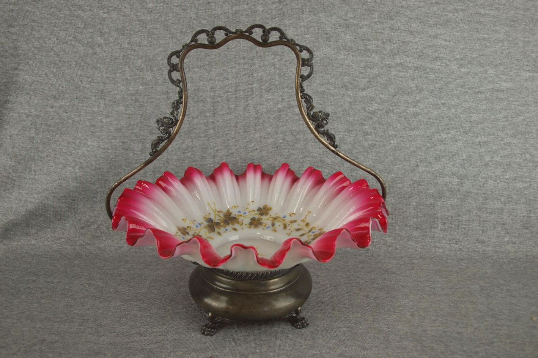 Brides basket with cranberry and white overlay insert