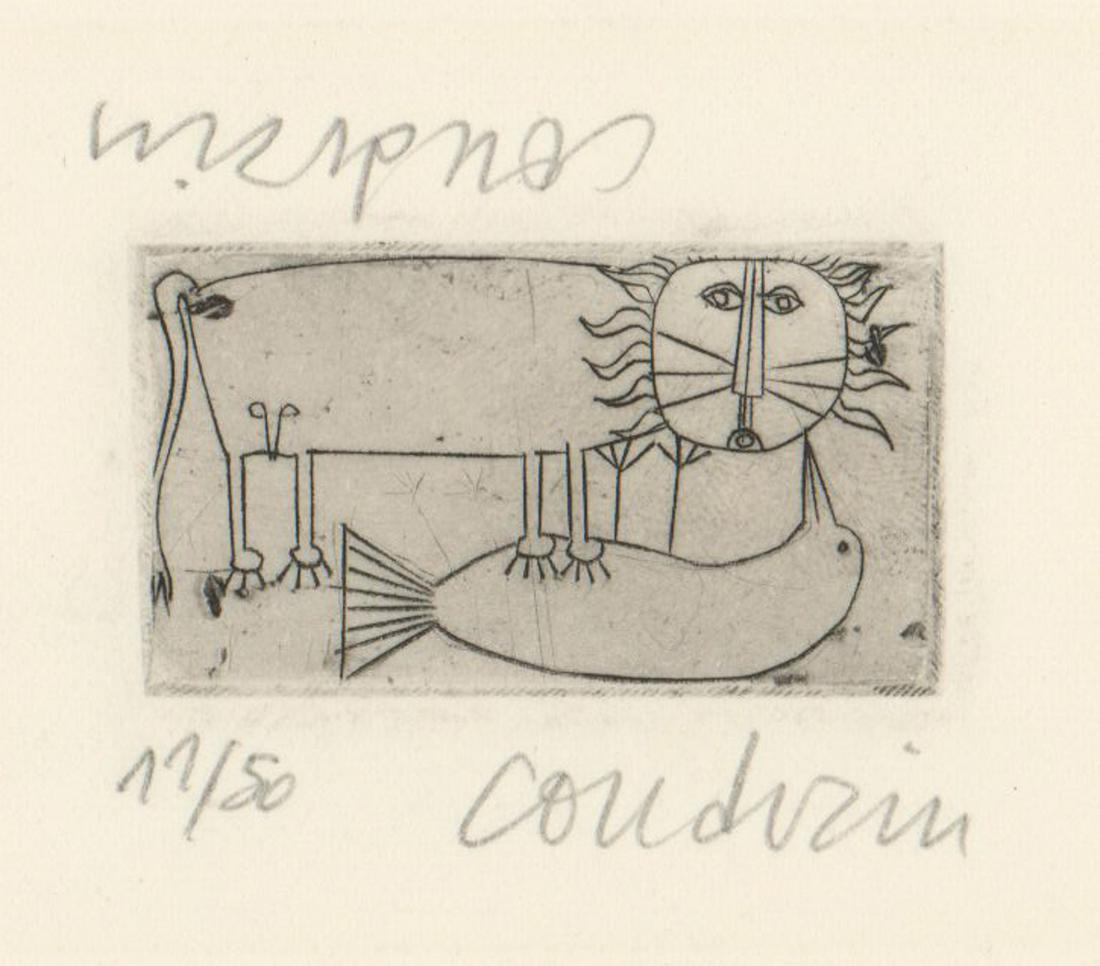 Brigitte Coudrain Etching [Cat, Bird]