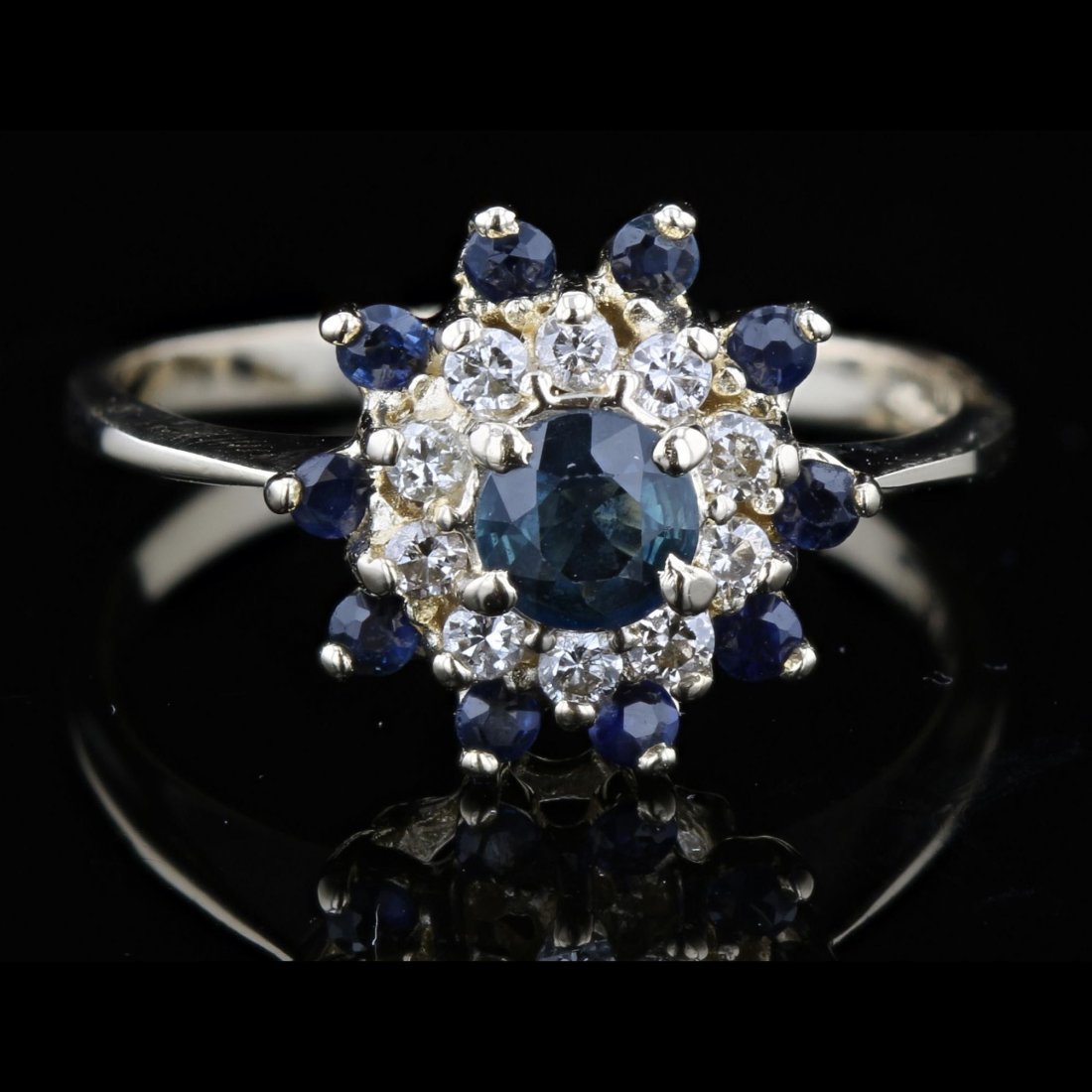 Sold14k Yellow Gold, 0.52CT Sapphire, 0.20CT Diamond RingOne, 14k Yellow Gold Diamond Ring, weighing 3.30gr. Eleven Round Cut Natural sapphires in Prong Set. Ten Round Brilliant Cut Diamonds in Prong Set. Diamond Carat Weight: 0.20CT Clarity Grade: SI1-SI2See Sold Price