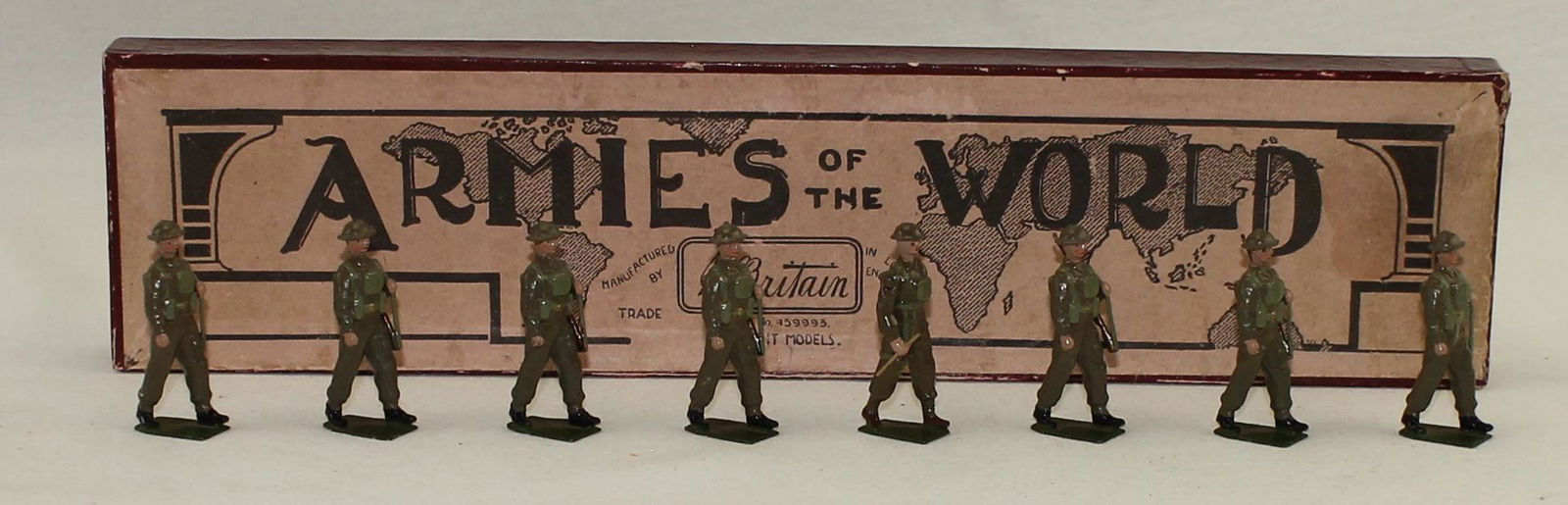 Lot of 5 Early 20th C. Britains Metal Cast Toy SoldierFeb 21, 2026Lot of 6 Early 20th C. Britains Metal Cast Toy SoldierFeb 21, 2026Antique Britains LTD Lead Hand Painted Civil War 2" Gun Toting SoldiersJul 05, 20256) TROPHY UNDER TWO FLAGS BRITISH INFANTRY LEAD TOY SOLDIER FIGURES IN BOXFeb 23, 2026LINEOL BRITISH, FRENCH, & US INFANTRYFeb 27, 202614) ASSORTED BRITAINS LEAD SOLDIERS WWI DOUGHBOYS ARTILLERYFeb 23, 20268) VINTAGE BRITAINS AUSTRALIAN INFANTRY SOLDIERSFeb 23, 20264) VINTAGE BRITAINS TERRITORIAL INFANTRY SOLDIERSFeb 23, 2026BRITIANS TOY SOLDIERS Colours & Pioneers of The Scots Guards No. 82 With BOX Made in EnglandMar 01, 2026SET OF 10 BRITAIN SOLDIERS W/ RIFLE - KNEELING & STANDINGFeb 23, 20268) VINTAGE BRITAINS ROYAL ARTILLERY INFANTRY SOLDIERSFeb 23, 20268) PIECE BRITAIN SOLDIERS W/ RIFLES & CRATEFeb 23, 202634) VINTAGE BRITAIN BRITISH INFANTRY LEAD SOLDIERSFeb 23, 202612) ASSORTED UNION SOLDIERS US CIVIL WARFeb 23, 20266) 1751 1ST FOOT GUARDS COLOUR PARTY OF GRENADIERS TOY SOLDIERS IN BOXFeb 23, 2026SET OF 8 BRITAIN SOLDIERS W/ RIFLESFeb 23, 2026