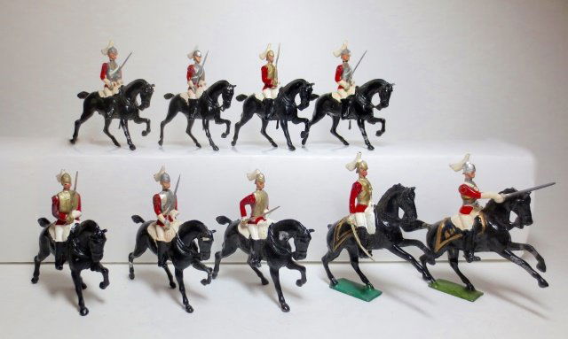 SoldBritains Set #1 Life Guards10 pieces, good to very good condition. Other Horse Guards included in this lot not from set #1.See Sold Price