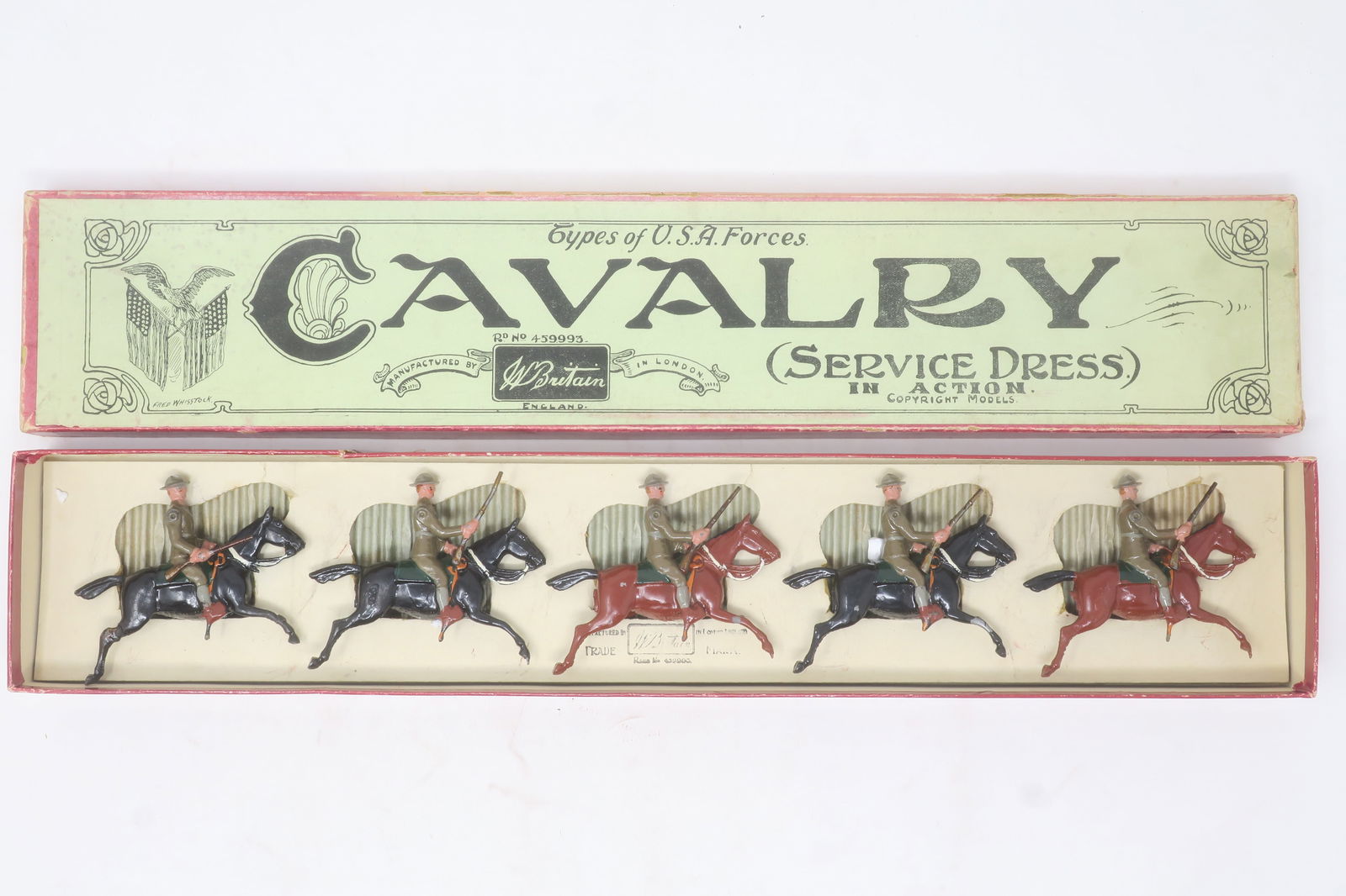 SoldBritains Set #229 US CavalryPre War. In Original Fred Whisstock Box. 5 Pieces. Condition Figures Excellent; One non-matching. Condition Box Very Good; With original slotted tie card and backing.See Sold Price