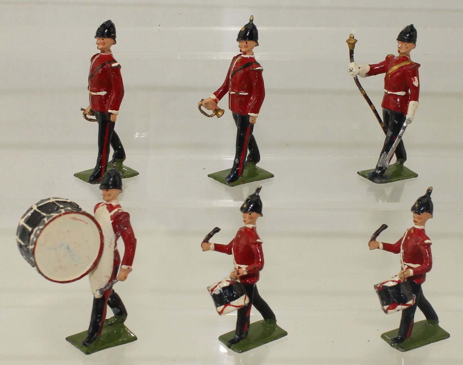 SoldBritains Set #30 Drums & Bugles of the LineSix pcs, G/VG, drum major baton broken but present, 1 drummer mismatched, box G, two split corners, no tie-card.See Sold Price