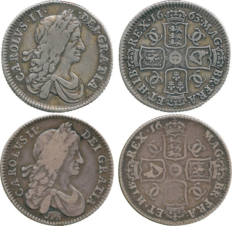 BRITISH COINS. Charles II, Silver Shillings (2), 1663,