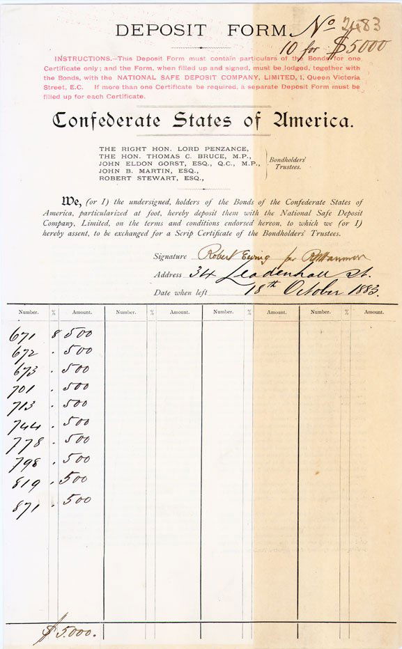 BRITISH CONFEDERATE BONDHOLDERS DEPOSIT FORM