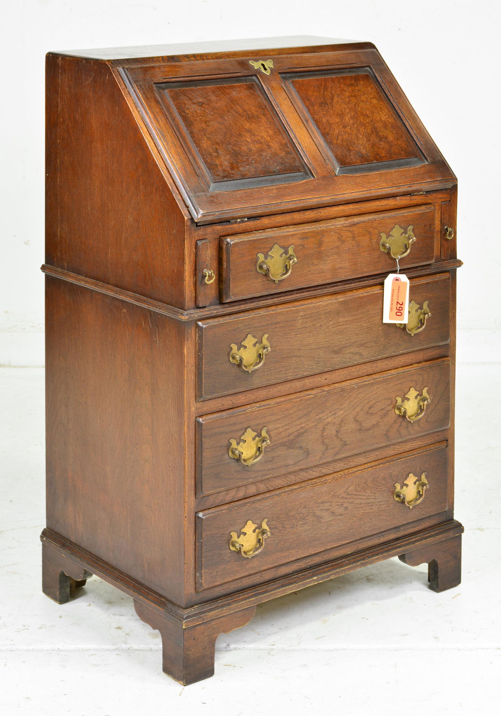 SoldBritish Oak 4 Drawer Drop Front DeskBritish Oak 4 Drawer Drop Front Desk - 38 in tall x 23 x 17See Sold Price