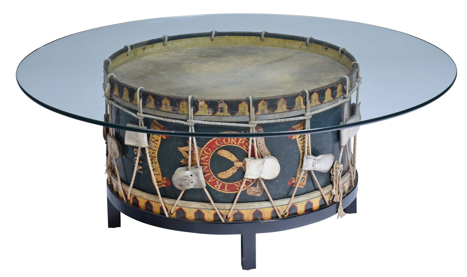 British Painted Drum Table Base with Glass Top