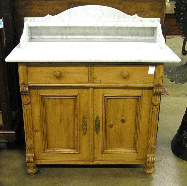 SoldBritish Pine White Marble Top WashstandBritish Pine White Marble Top Washstand - 43.5 in tall x 35.5 x 18See Sold Price