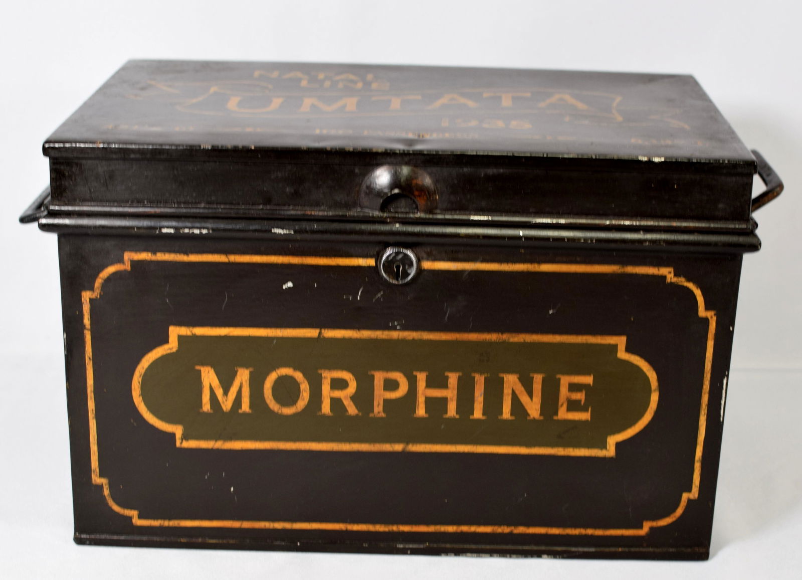 BRITISH TIN MARITIME STRONG BOX FOR MORPHINE