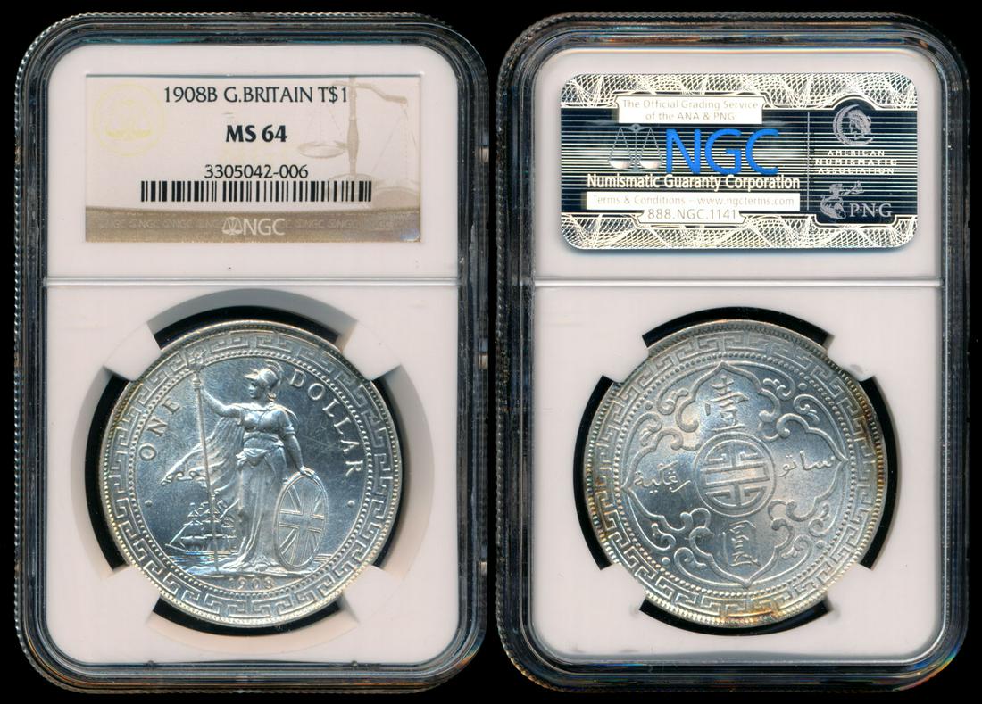 British Trade Dollars 1908B NGC MS64