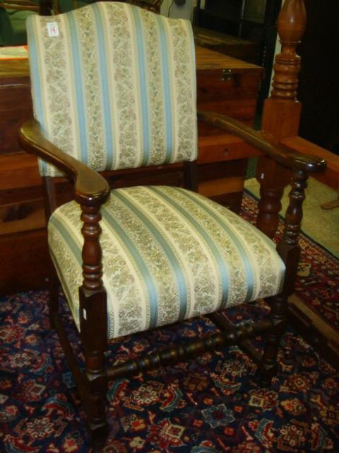 Brocade Upholstered Walnut Arm Chair
