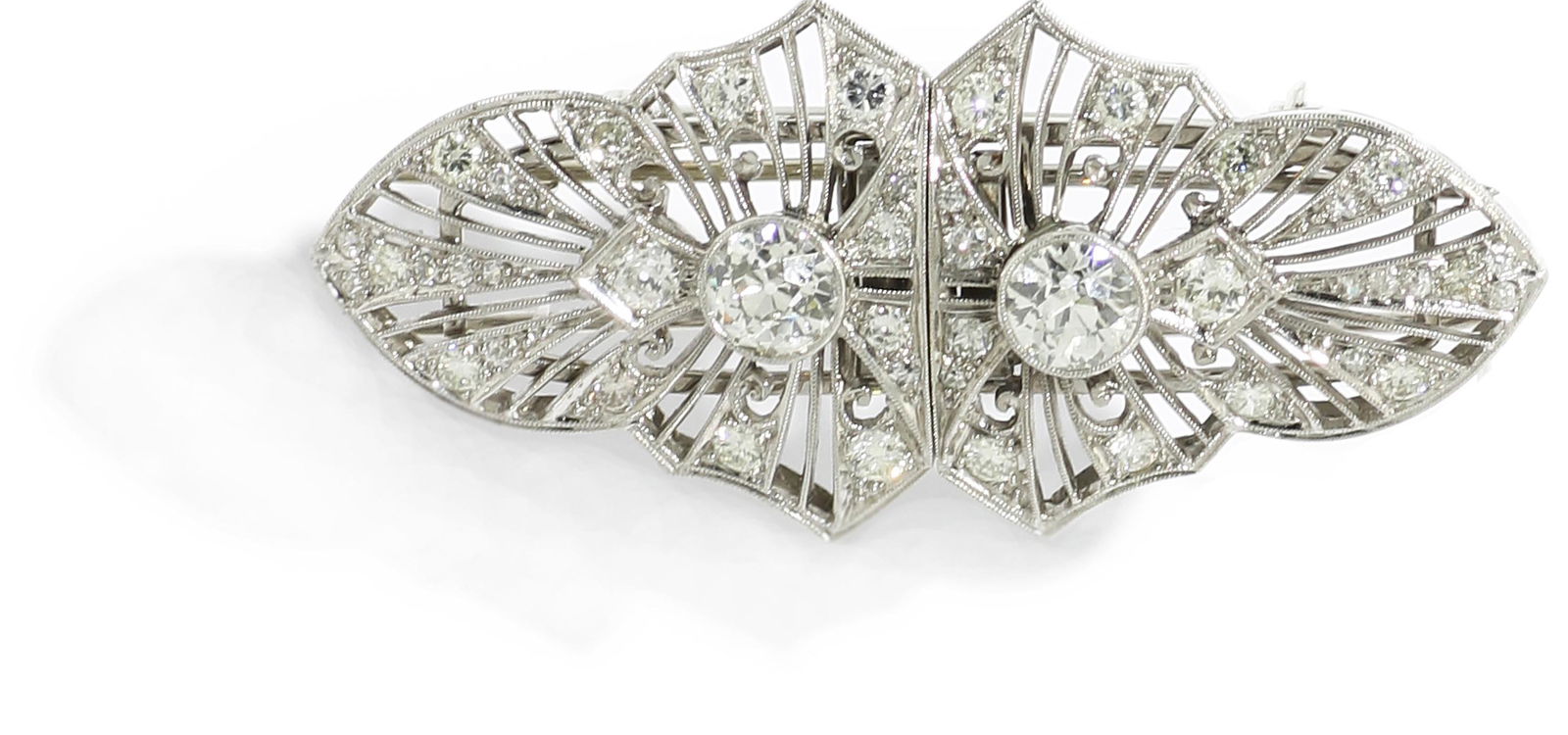 Broche Art Déco platine ajouré et or gris 750 sertie de diamants taille ancienne et intermPiguet Hôtel des Ventes4.2(5)CHF 1,000